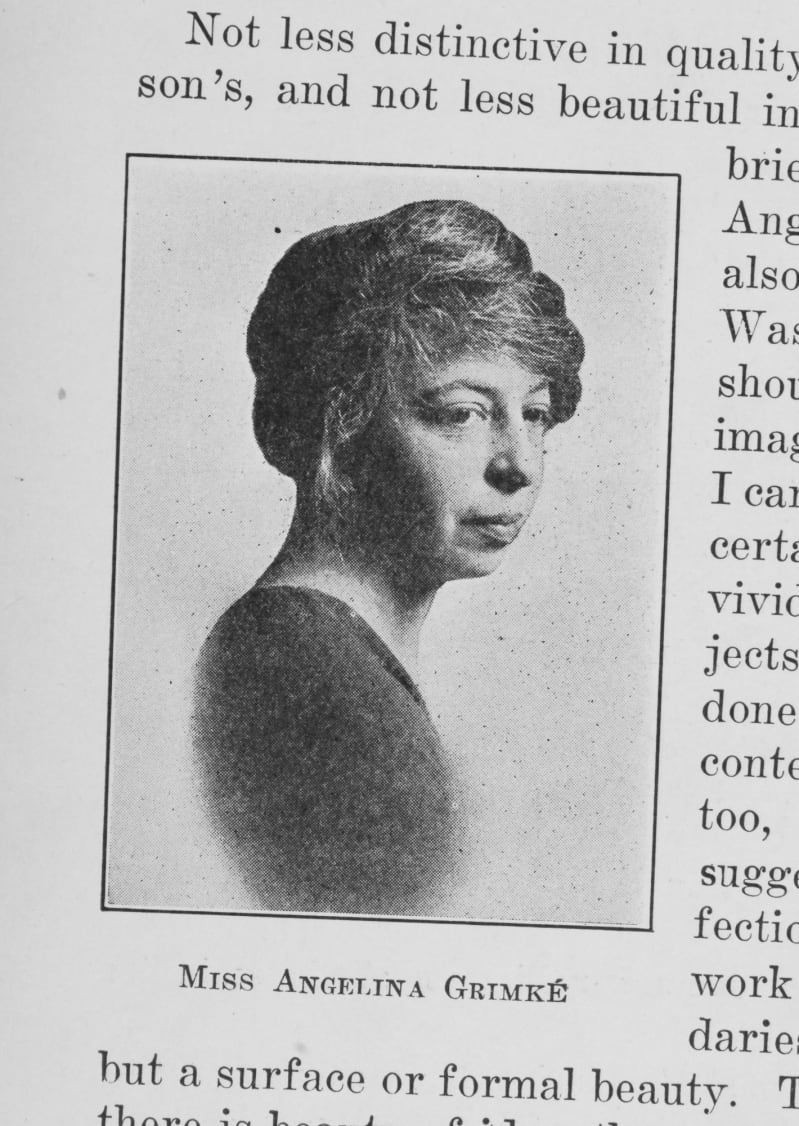 Grimké’s father remained a major influence in her life, because she never married or had children of her own, he was her primary companion. She retired from teaching in 1928 to care for him as he suffered from a long illness. Archibald Grimké passed in 1930, and it was at this point that Grimké moved to New York and stopped writing. She lived out the rest of her days in a solitary and reclusive fashion, dying in 1958 at the age of 78. ♦