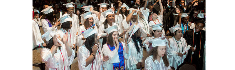 Earlier this summer, the Bronx Theatre High School (BTHS) Class of 2019 celebrated their graduation and a 16-year partnership with Roundabout on stage at Studio 54. Located in the Marble Hill area of the Bronx, the school was co-founded by Roundabout in 2003 with New Visions for Public Schools with a focus on preparing students for higher education and professional careers in theatre and its allied industries.