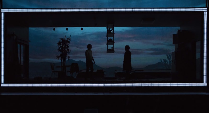 Shepard writes very specific design notes for his play. It’s as if he knew the bare, open nature of the play would invite conceptual overlays and theatrical tinkering. He very clearly states that all the design elements should remain realistic. That nothing should take away from the evolution of the characters. He even tells you what the coyotes of Southern California sound like. In order to design sound for this production, I watched some classic Westerns. I wanted to play with a soundscape of classic Western tropes, especially while the men are on stage narrating the Western screenplay they are working on.