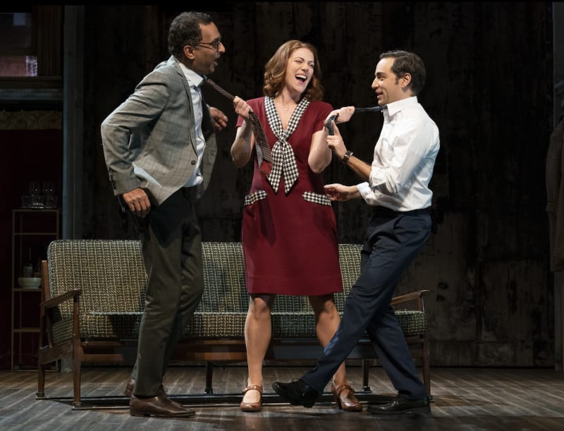 JA: I don’t really think it’s a huge challenge. It’s like looking at a photo album in reverse: you recognize the people, and perhaps it can be a beautiful experience to seem to see time go backward, which of course it never can in life. Furth and Sondheim wrote a piece of experimental theater in 1981, and we’ve tried to honor that, rather than trying to make the show conform to a kind of dramaturgy that isn’t what the show is trying to do. We have tried to take the pressure off of the years to mean something specific to the audience (since audiences of varying ages will have different relationships to hearing “1973” anyway). A scene in this play happens in 1973 because that’s the year these friends had that specific argument, not because the play is saying something about America in 1973, specifically. It’s about these human beings and where their relationships were at points over the course of 25 years. The particular years aren’t the point; it’s about the broader idea of people and circumstances changing over time.