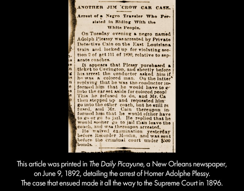 The state of Louisiana played an integral role in the development and implementation of Jim Crow laws in the United States. Beginning with the separation of white and Black people in schools and on public transportation, Jim Crow expanded rapidly to become a codified system of justification for the subjugation and violent treatment of Black Americans throughout the country.