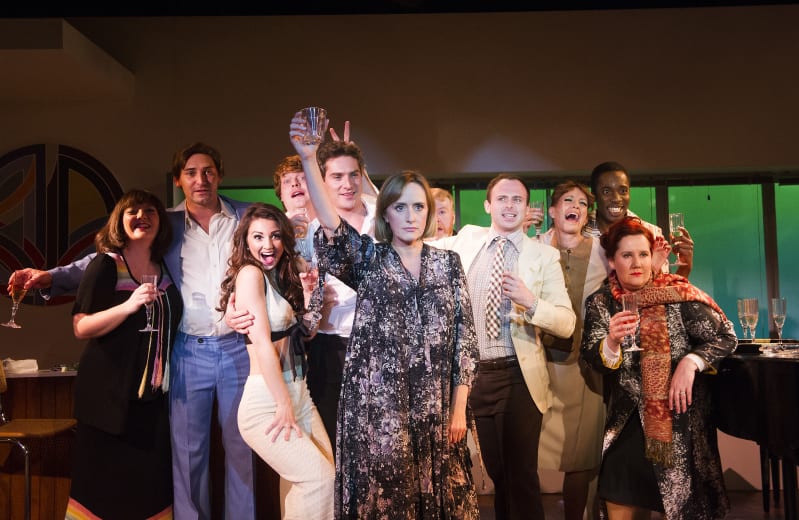 The show had its West End debut 12 years earlier, with a production helmed by director Michael Grandage and featuring Daniel Evans, Samantha Spiro, and Julian Ovenden as Charley, Mary, and Frank, respectively. Noted for its restoration of the stirring graduation song “Hills of Tomorrow” (cut from previous productions), this Merrily continued the tradition of working to redeem what reviewer Matt Wolf phrased as “the bitter yet ravishing beauty of that short-lived Broadway entry.” The production received the Olivier Award for Best Musical that year, as well as performance awards for both Evans and Spiro.