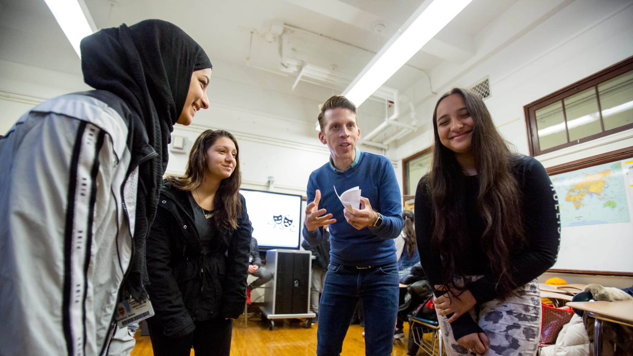 These residencies are customized to fit the goals and needs of the partner teacher and students. Each workshop is co-planned and co-taught by the Roundabout Teaching Artist and partner teacher. Typically visits occur once a week over the course of 8–12 weeks.